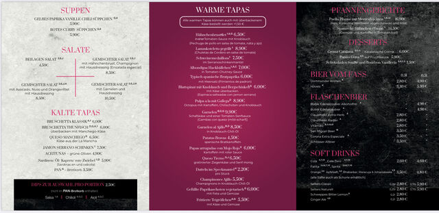 Liebe Gäste, wir begrüßen Euch mit Tapas, den beliebten spanischen Kleinigkeiten, mediterranen Spezialitäten. Genießt das gemütliche Ambiente mit kleinem oder großem Hunger, in kleiner oder großer Gesellschaft. Für Eure Feierlichkeiten haben wir sogar einen Saal für rund 50 Personen.
